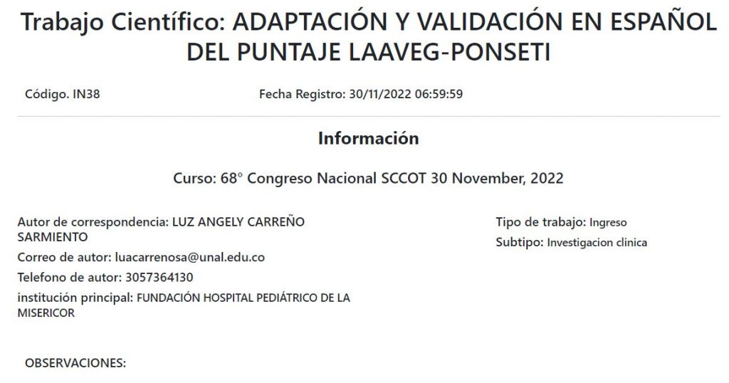 In 38 Adaptación y validación en español del puntaje laaveg-ponseti