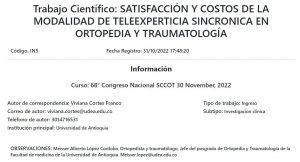 In05 Satisfacción y costos de la modalidad de teleexperticia sincrónica en ortopedia y traumatología mayo 9, 2023 Ver más