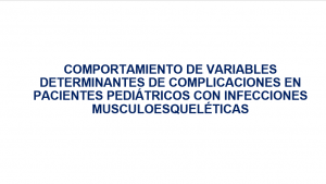 EP134 Comportamiento de variables determinantes de complicaciones en pacientes pediátricos con infecciones musculoesqueléticas abril 18, 2024 Ver más